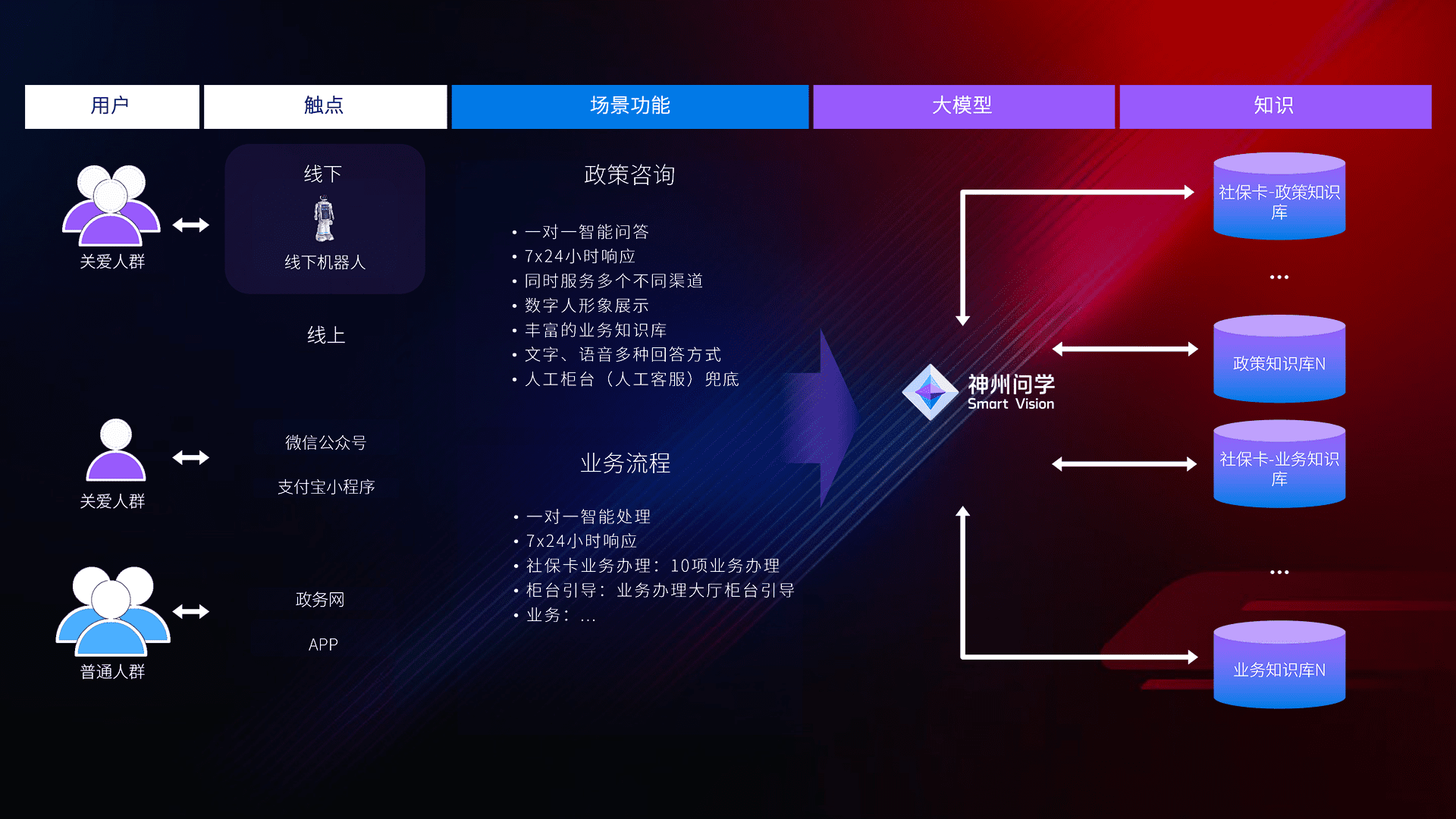 • 线上线下全覆盖:线上提供微信公众号、、、、支付宝小程序、、政务网、、app多种渠道,,与线下机器人形成完整服务体系。。